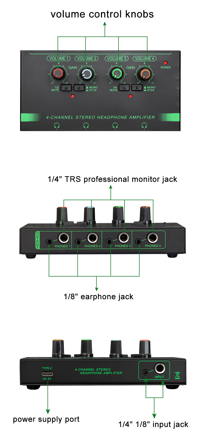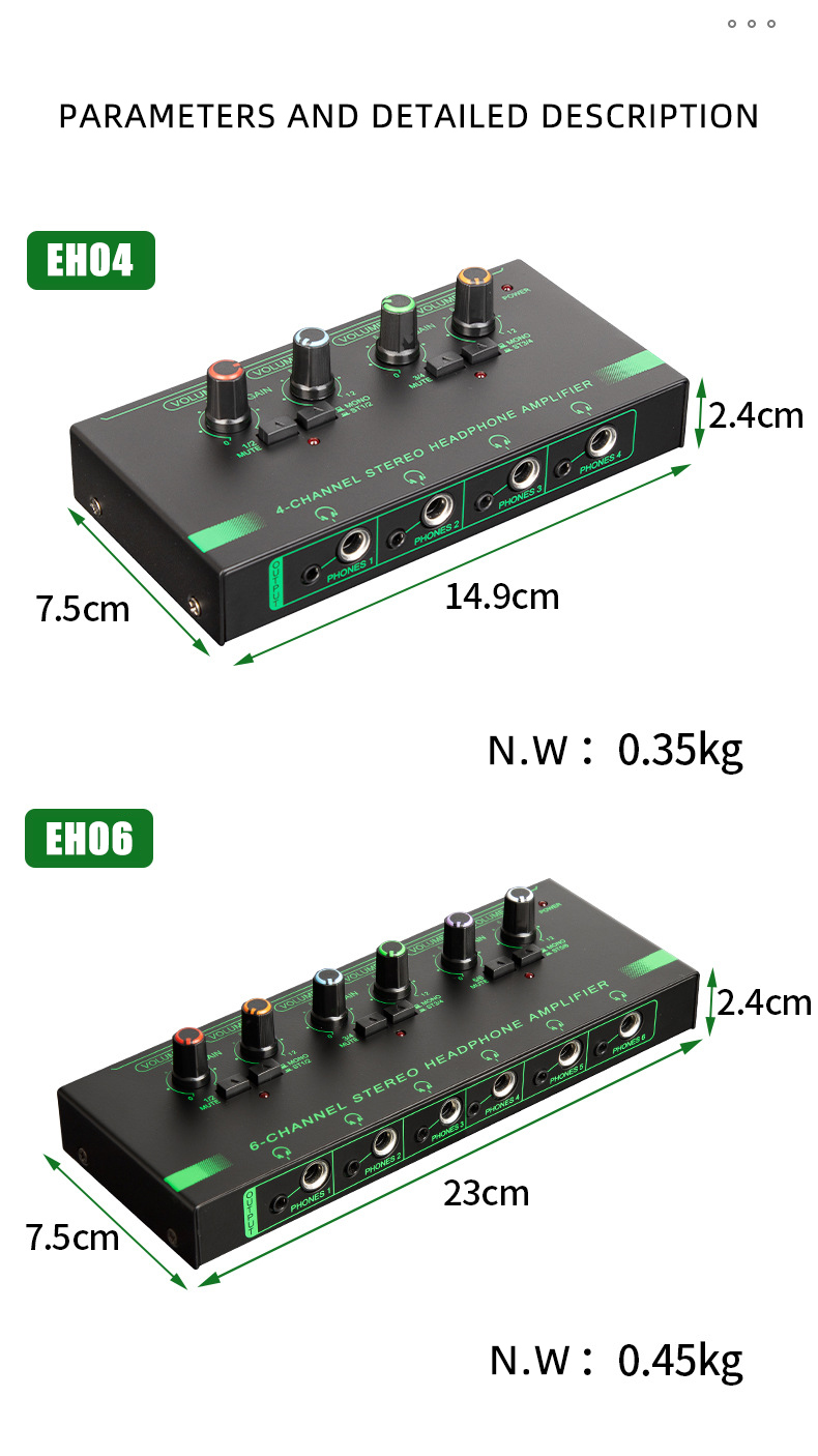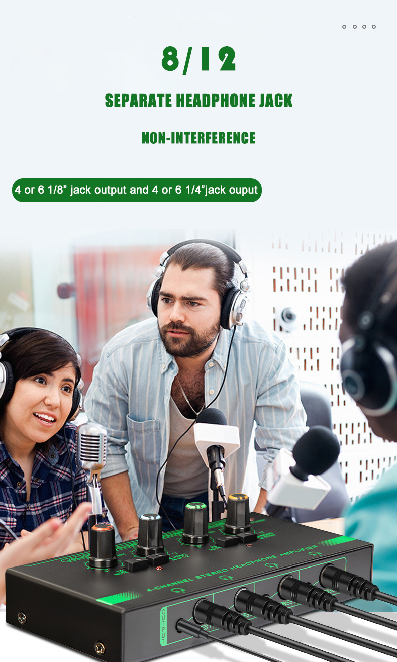 Portable Size: ultra-compact stereo headphone amplifier allows for easy carry around, use it anytime and anywhere. Practicality: 4-channel distribution system makes up to 4 people listen to the playback with outstanding audio quality simultaneously. Convenience: independent volume control enables each listener determine their own volume level via dedicated output level control knob. Easy Use: 5 press buttons ensure easy control; 1/4" and 1/8" outputs, 1/4", 1/8" TRS and RCA inputs meet usage demand. |